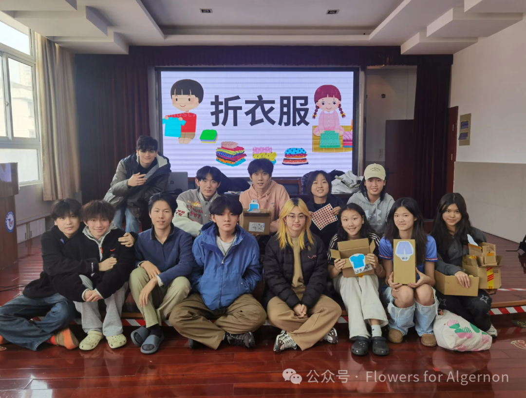 On February 26, Flowers for Algernon (FFA) held our first event of 2025 at the Special Education School of Changshu. We had 48 vibrant kids join us in a session focused on doing the laundries. Our activity isn’t just about having fun—it’s about helping the children develop practical skills that can make their daily lives easier and more independent. By teaching them how to sort and fold clothes, we’re showing them how to recognize different types of garments and understand why keeping things organized matters. These basic skills, like knowing how to take care of their belongings, are small steps toward greater independence. They give the children more control over their routines and help them feel capable and confident in managing everyday tasks.
